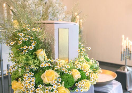Abschiednahmen und Trauerfeiern gestalten wir im kleinen oder im großen Rahmen – immer mit Liebe zum Detail. In unserem Hause finden Sie die Räumlichkeiten, um sich ungestört Ihrer Trauer zu widmen. Wir sind an keine Zeiten gebunden. Dekorationen, den Blumenschmuck sowie die begleitende Musik setzen wir nach Ihren Wünschen um.